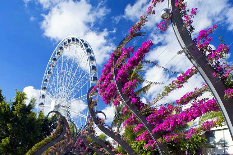 2.步行穿过布里斯班的娱乐中心 —— 南岸(South Bank) 步行或骑自行车穿过布里斯班河(Brisbane River)的南岸,既能欣赏到城市最美的一面,又能锻炼身体。南岸因其多样的娱乐休闲活动而闻名,拥有占地17公顷的公园、餐厅、咖啡馆、酒吧、精品店、博物馆和美术馆。或是坐上布里斯班摩天轮(Brisbane Wheel),从别样的角度领略城市的旖旎风光。