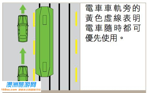 任何时候都可以压黄色虚线并在电车车轨上行驶,但不得驶入电车车道。