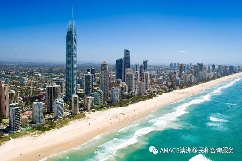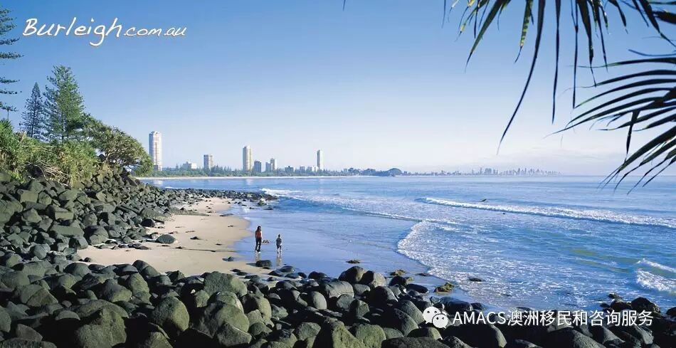 澳大利亚昆士兰州的黄金海岸濒临太平洋,拥有长75公里的海滩,是全世界最长的沙滩海岸。白沙细软,海水湛蓝,天高云淡,四顾茫茫。其中连续海滩长达42公里,在42公里的转弯崖角处,有一片礁石,层层的海浪从礁石崖头冲过来,汹涌澎湃,勇往直前,高度达2—3米,如果海上风浪大作,更是浪涛怒吼,掀起狂涛巨澜,其壮观的景象令人惊叹。