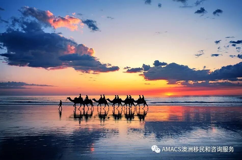 尔海滩(Cable Beach) 因其长22 公里阳光明媚的白色沙滩、碧绿晶莹的海水和壮观秀丽的印度洋日落景观而无可争议地闻名于世。但是真正使其成为游客首选必游之地的是,坐在骆驼背上饱览热带风光的独特体验。