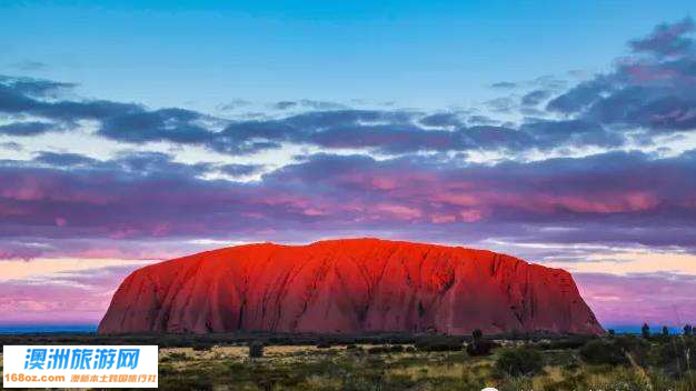 乌鲁鲁位于澳大利亚的红土中心北领地,慕名而来的游客绝大多数都是跟团游,目的就是来一睹大石头——乌鲁鲁艾尔斯岩的风采。乌鲁鲁是世界上最大的整块单体巨石,形成距今已有6亿年历史。乌鲁鲁岩石整体色泽赭红,光溜溜的表面在太阳底下闪烁着光芒,在空寂无物的广袤沙漠上直刺苍穹,显得既壮观又神秘,乌鲁鲁岩石还会随着时间转换的颜色,呈现出不可思议的力量。