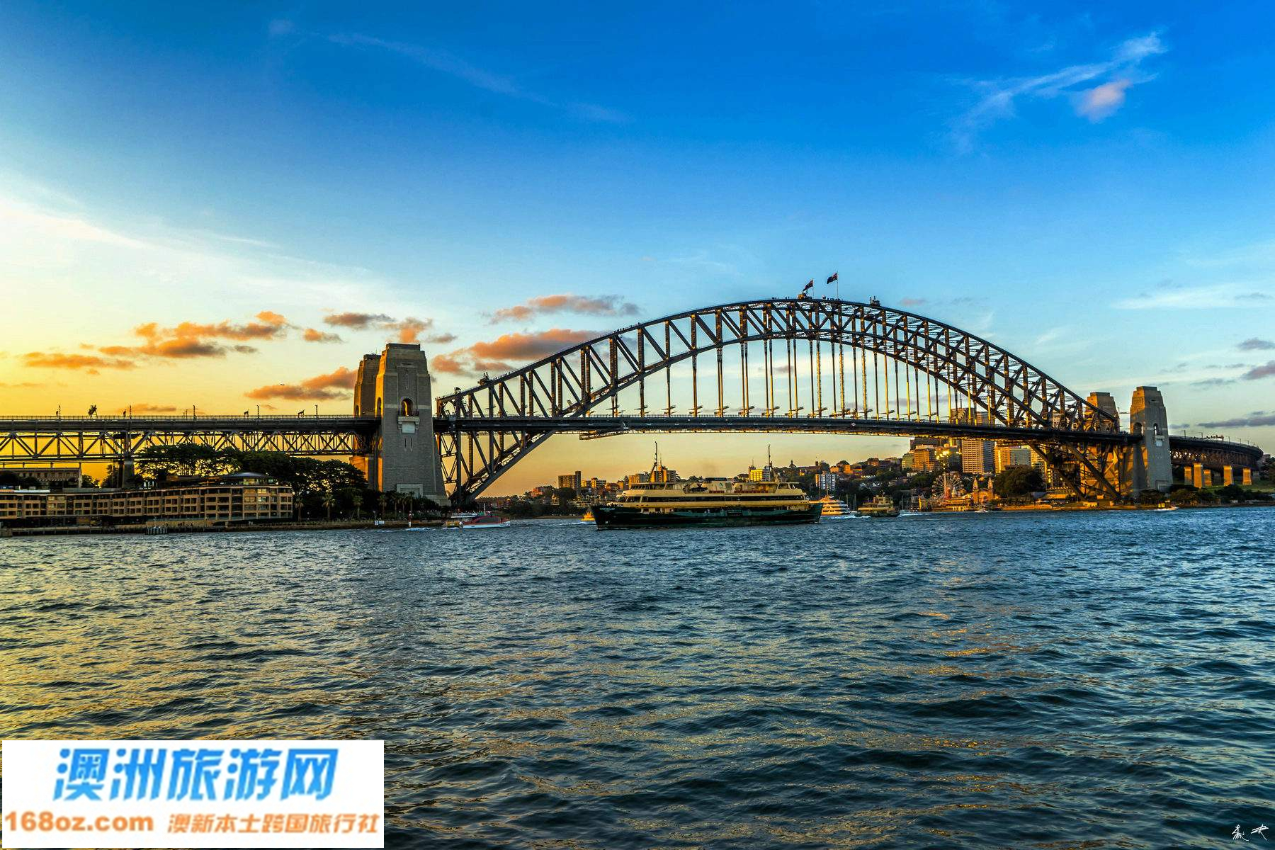 悉尼海港大桥(Sydney Harbour Bridge)位于悉尼歌剧院的西边,是悉尼的标志性桥梁,也是地标性建筑,与悉尼歌剧院齐名,占据了悉尼明信片的绝大多数版面,连接着悉尼CBD中心和北岸。悉尼海港大桥建于1932年,总长1149米,宽度139米,最高503米,是世界上最高的钢铁拱桥。现在攀爬悉尼海港大桥(Bridge Climb)已经成为悉尼最受欢迎的旅游项目,这也是世界上唯一允许游客爬到拱桥顶端的大桥。