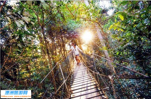 首先你不得不去走一走O'Reilly's Treetop Walk,这是澳洲首条树顶漫步小道,它其实是吊桥,离地约15米,因建在茂密的树林中,所以从上往下看也看不到地面。在吊桥上行走,一开始会有轻微的眩晕感,走一会儿就好了。沿着这树顶小道前行到雨林深处,将欣赏到澳洲特有的珍奇花卉以及上千年的古木,在大饱眼福大长见识之余,由于吸饱了负离子,连呼吸都青翠起来了!