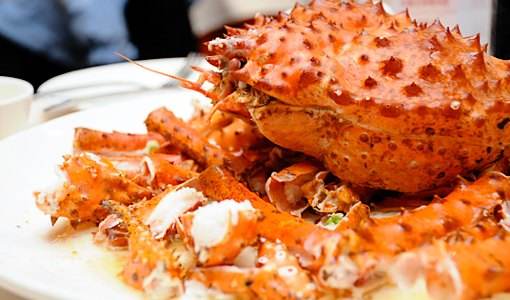 相对于牡蛎和龙虾,帝皇蟹是比较高贵的食材。虽然价格相对贵一些,但因其鲜美肉多的大个头,还是阻止不了来悉尼旅游的游客对它的喜爱。帝皇蟹有冰镇、蒜茸蒸、水煮、糖炒等烹饪方法,高温水煮之后的帝皇蟹整只置于碎冰之上冰镇,不但不会使帝皇蟹温度下降而失去口感,反而突显出了蟹肉的鲜嫩多汁、鲜甜非常,令人大快朵颐之后仍回味无穷。帝皇蟹的蟹膏还能拌入小米熬成蟹膏粥,也是一道营养丰富、惹人垂涎的佳肴。