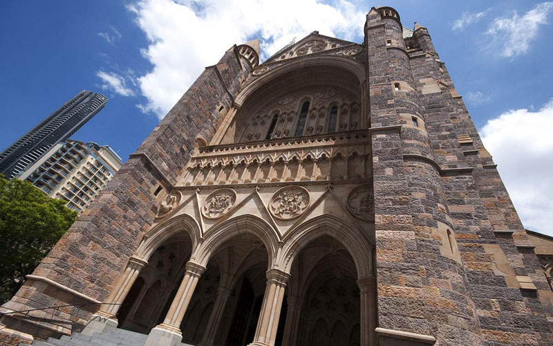 在车水马龙的地方,竖立着这么一座瞩目的教堂。圣约翰大教堂是一座遗迹,有着无与伦比的灿烂文化。坐落在king george square旁边,在议会大厦的左前方,不是一个很大的教堂,但是却很宏伟。现在已成为布里斯班的一处地标建筑,也是澳大利亚唯一一个有全石头穹顶天花板的教堂。