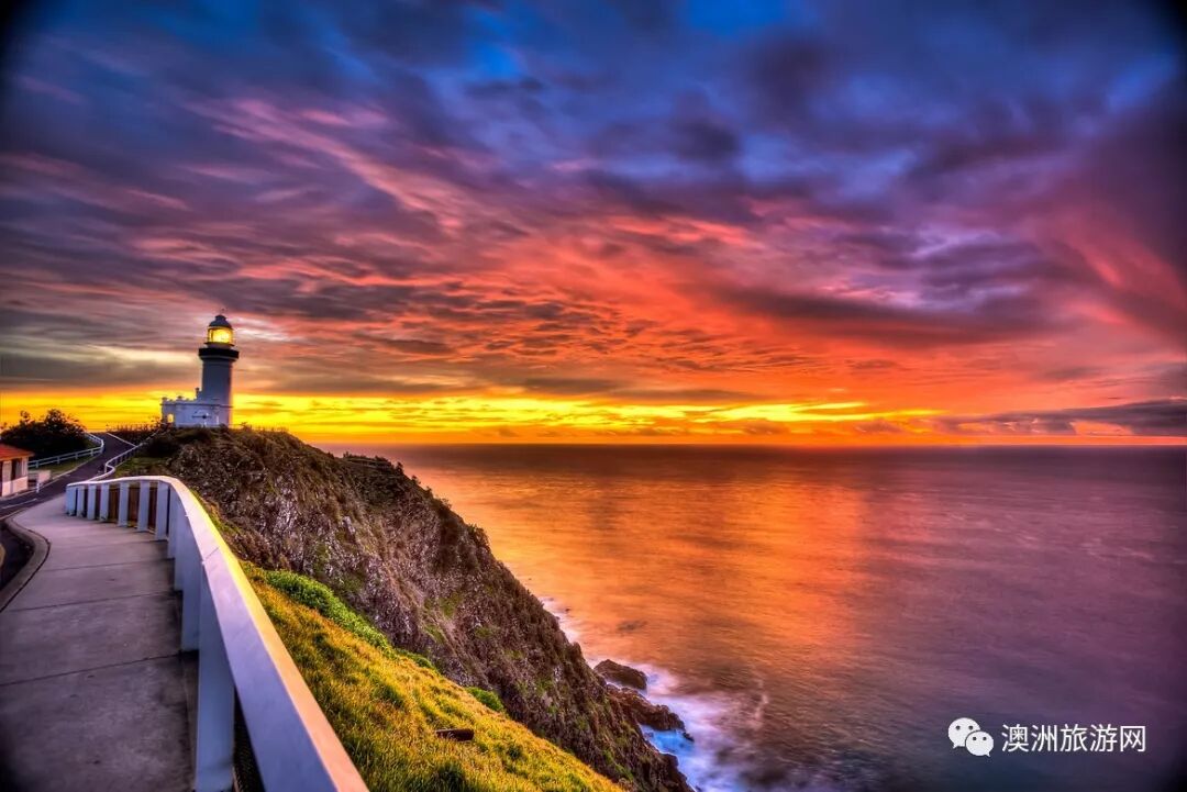 作为澳洲大陆的最东点,Byron Bay不仅有着诗人一样的浪漫名字,更是全澳甚至全球游客最向往的日出观景地——尤其是海边的灯塔Cape Byron Lighthouse,更是许多广告、宣传册的取景地。
