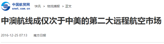 根据中国民航局发布的数据,中澳航线已成为仅次于中美的第二大远程国际航空运输市场。