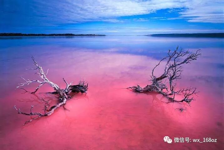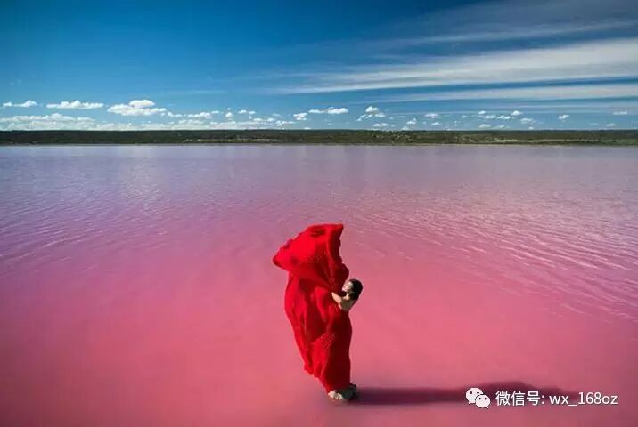 快要开出Kalbarri,路边有一个巨大无比的湖。然后最神奇的是,这个湖的湖水是粉色的。
