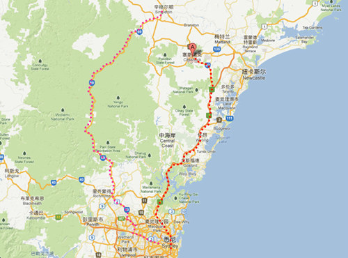 自行驾车是前往猎人谷区(Hunter Valley)最便捷的方法。附上一张悉尼猎人谷地图。