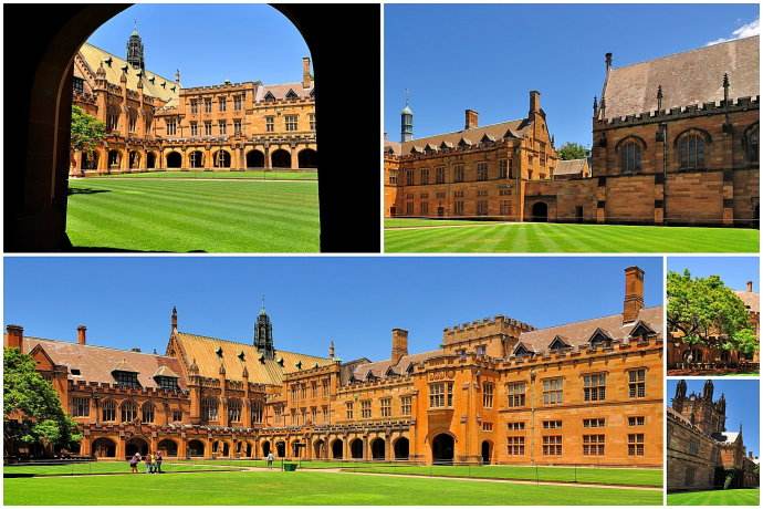 悉尼大学有名的Quadrangle是由一组建筑物构成的,它们不仅是这所大学的象征,同时也是教学办公的中心。