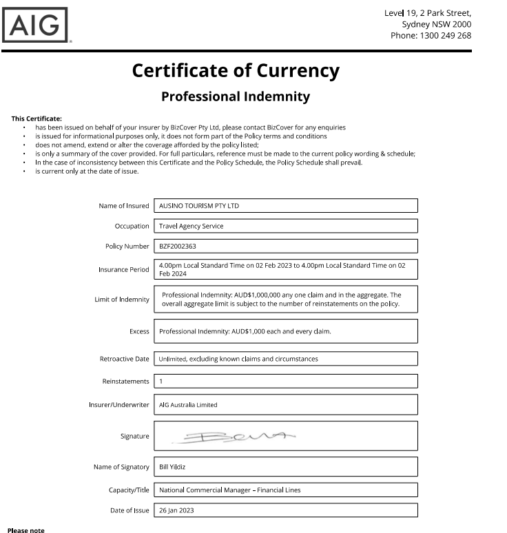 有12年经营历史的Ausino Tourism Pty Ltd (澳大利亚澳中国际旅游有限责任公司)。