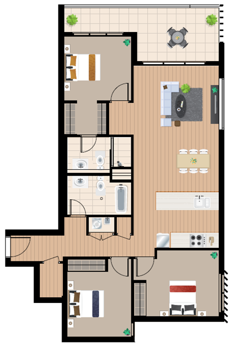• 豪华的1、2、3室公寓