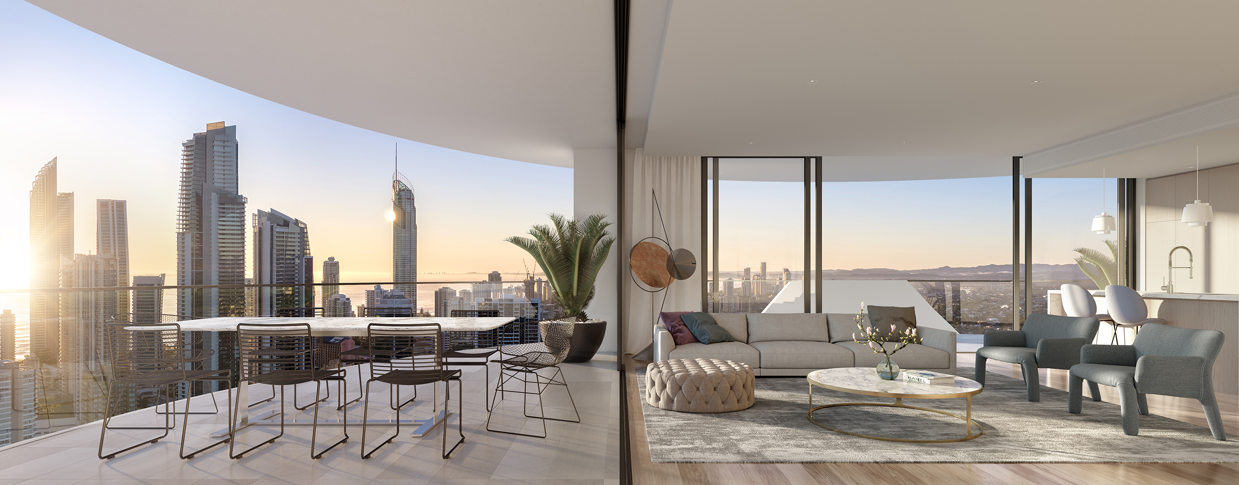 CHEVRON ONE的设计以黄金海岸三大标志性符号:阳光、沙滩、大海为灵感,采用充满生机的雕塑线条,演绎浪漫滨海风情。