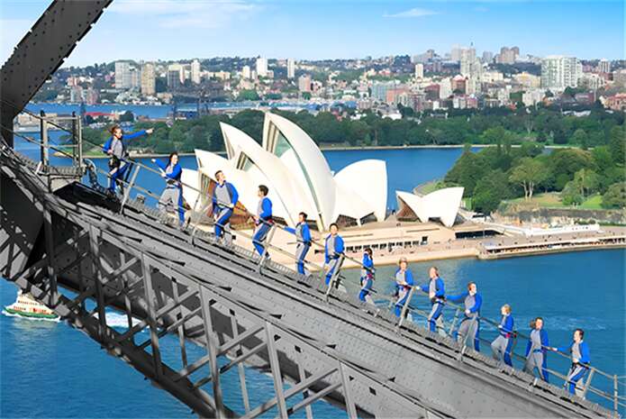 悉尼港大桥是澳大利亚著名旅游景观,悉尼的明信片,其始建于1923年,1932年竣工,与举世闻名的悉尼歌剧院隔海相望,大桥将南悉尼和北悉尼连在了一起。是世界上少见的大跨度单孔拱形桥。攀登悉尼海港大桥已经是70%游客选择的游玩项目,《孤独星球》曾经将海港大桥攀爬评为“世界前十大旅游体验项目”之一。