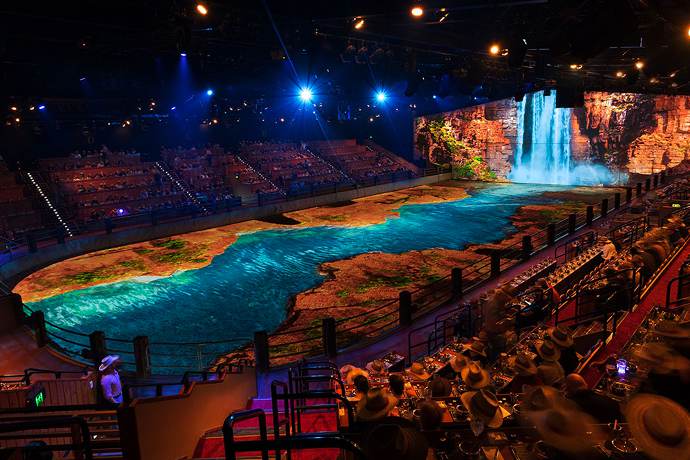 投资2300万澳元,可容纳千名游客的巨型室内牛仔狂欢表演项目。如果你希望放纵一下自己,如果你希望用狂欢来寻找另外一个你,如果你不仅仅是观众还希望是一个狂欢的参与表演者,哪你就来吧,这里可以让你暂时的忘却过去。带着面具在昏暗灯光下的牛仔舞会;狂饮之下的是牧场争霸战、激烈的马术比赛,场面刺激,震撼,狂野。