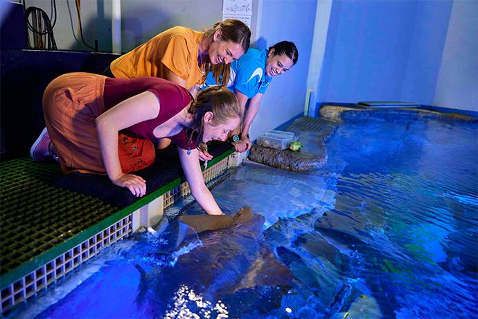位于凯恩斯市中心的海洋自然水族馆,由于水族馆坐落于世界自然遗产热带雨林和世界自然遗产-大堡礁的独特位置使之成为最受欢迎地海洋馆游览项目之一。游览观赏世界唯一的-10M深。360度的深礁环游景观,20M深的水下隧道观赏数以百计的珍贵热带海洋物种,游览罕见的红木林及淡水野生动物展览馆。